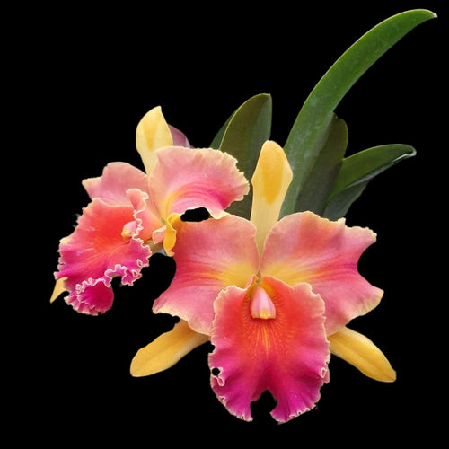 The large, 5-6” blooms are a sight to behold, with ruffled lips adding an extra touch of elegance. What makes Blc. Amazing Thailand 'Magician' truly magical is its ability to transform over time. As the flowers mature, they undergo a breathtaking metamorphosis, deepening in color to reveal richer shades of pink and orange, creating a mesmerizing display of multicolored petals.