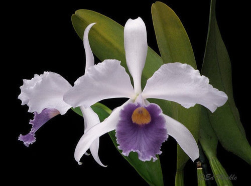 The Cattleya Eximia var. coerulea, a primary hybrid between Cattleya warneri var. coerulea and Cattleya purpurata var. werkhauserii, boasts large light blue flowers adorned with a dark slate-blue lip. Paired with the compact and rare Cattleya violacea var. coerulea, characterized by fantastic baby-blue flowers and a darker lip with a touch of yellow in the throat, this hybrid promises an extraordinary floral spectacle.