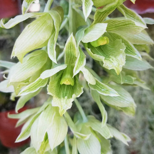 Stunning Appearance This orchid dazzles with its graceful pendulous inflorescences that bear a multitude of enchanting light green flowers. Each bloom is adorned with darker green stripes, creating a mesmerizing visual contrast that's nothing short of captivating. When this orchid bursts into bloom in early summer, it's like a breath of fresh air in your collection, offering a unique charm that's hard to find elsewhere.