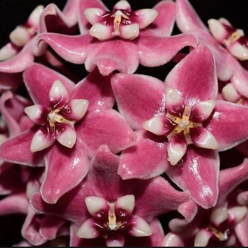 The deep pink flowers of the Hoya subcalva are truly a sight to behold, adorned with a subtle apricot streak on the corolla. The blossoms emit an irresistible fragrance, reminiscent of a delightful blend of candy and exotic fruits. One can't help but be drawn to the mesmerizing scent as it permeates the air, making it an ideal addition to any living space.