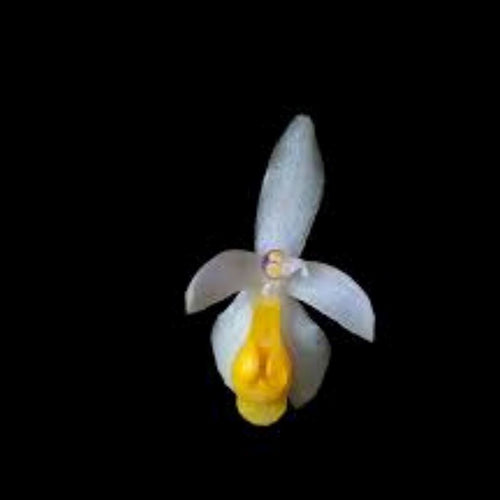 During its flowering time in late spring and early summer, the Camarotis obtuse unveils delicate white blossoms, each bearing a striking yellow spot on its lip, adding a touch of elegance to any space. The flowers, measuring approximately 0.65" (1.8 cm), emerge in clusters along a lateral, laxly successively 10 to 15 flowered racemose inflorescence, extending up to 6" (15 cm) in length.