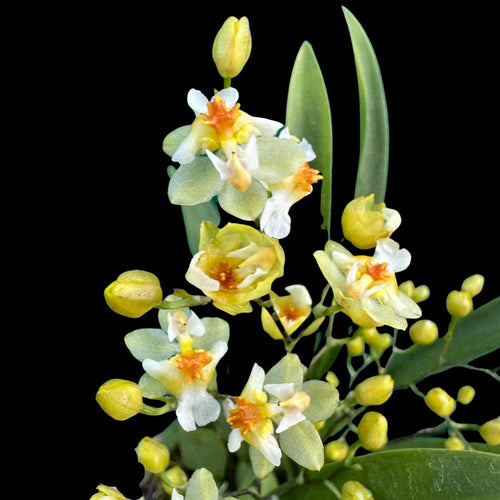 Introducing the Oncidium Twinkle 'Fantasy' – a mesmerizing orchid variety that will enchant any orchid enthusiast with its charming features. This petite beauty is renowned for its very compact size and dainty, fragrant flowers that form delightful sprays of blooms. The Oncidium Twinkle 'Fantasy' boasts light yellow flowers and has a unique tendency to produce four or more spikes throughout the year, ensuring a constant display of its exquisite blossoms.