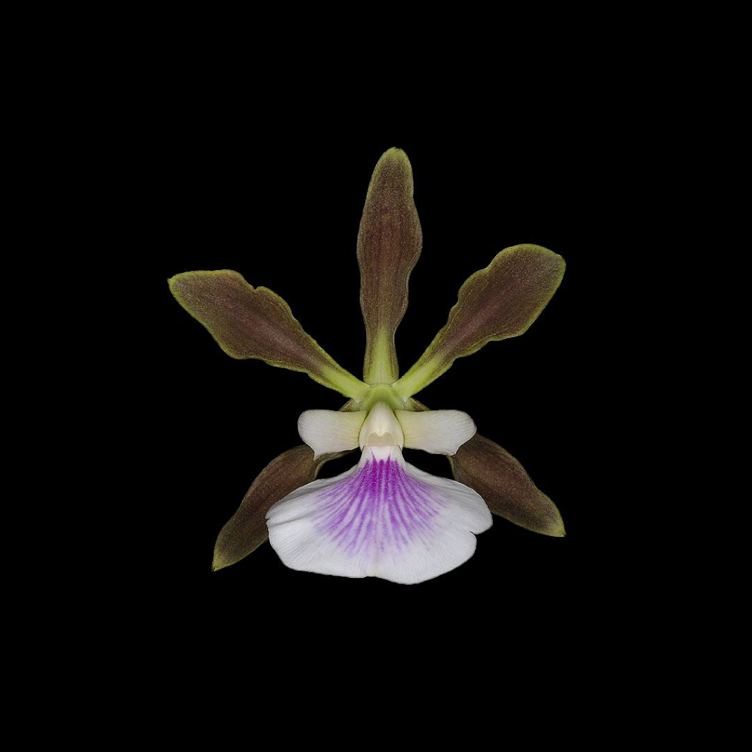 Encyclia randii var. rondoniensisis a captivating orchid species native to the western Amazon region of Brazil. While its flowers may initially resemble those of Encyclia cordigera, a closer inspection reveals distinct differences. Unlike cordigera, Encyclia randii features smaller pseudobulbs and leaves with a purple flush, giving the entire plant a muted green-purple hue. When well-cultivated, mature plants produce striking flowers that can reach up to 2.5 inches in size. The sepals and petals are a deep olive green, creating a bold contrast with the white lip adorned with purple stripes. Additionally, the flowers are pleasantly fragrant. Despite its beauty, Encyclia randii remains relatively unknown and rarely seen outside of Brazil.